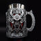 The exquisitely crafted tankard features a haunting demonic design with hand-painted mysterious symbols and intricate embellishments, along with ancient Latin text.